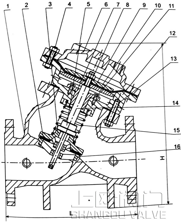 多功能水泵水力控制阀主阀(隔膜式)结构图