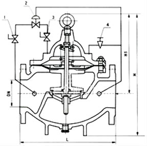 800X压差旁通平衡阀外形尺寸(mm)| DN | 20 | 25 | 32 | 40 | 50 | 65 | 80 | 100 | 125 | 150 | 200 | 250 | 300 | 350 | 400 | 450 |